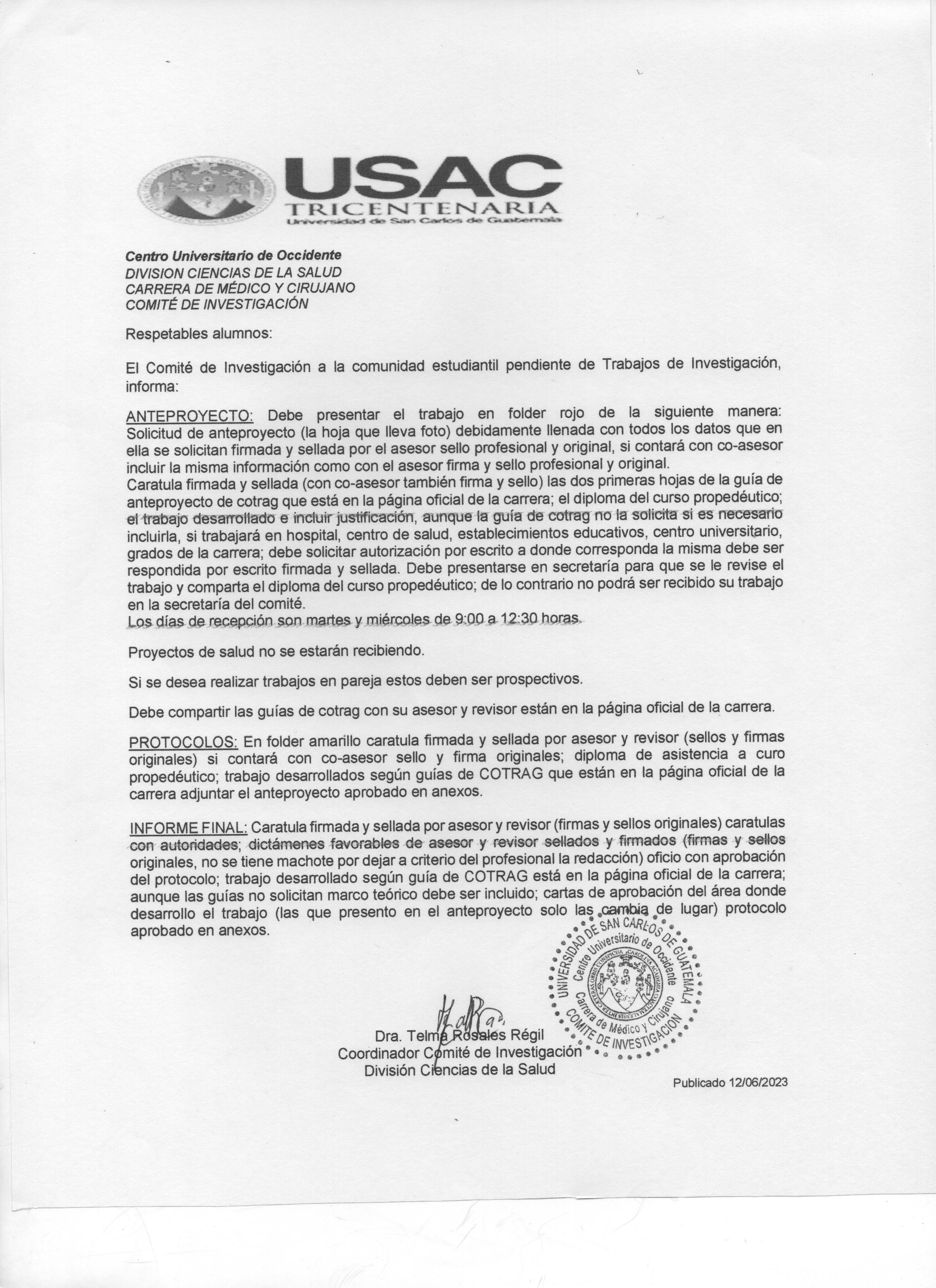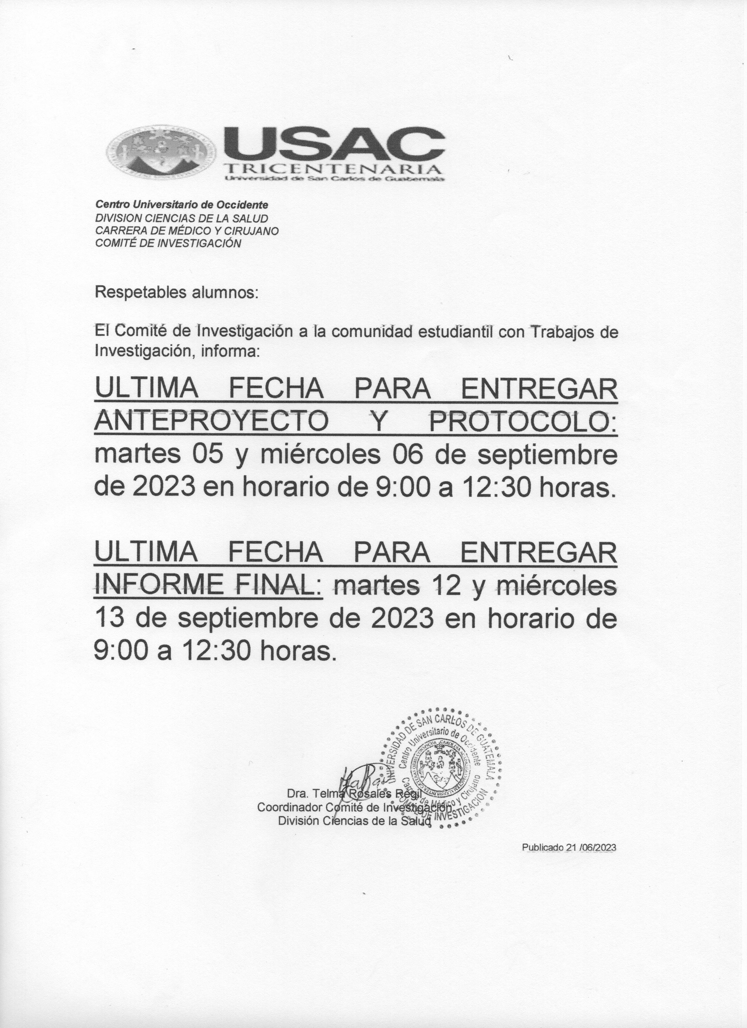 ATENCION: EL COMITE DE INVESTIGACION INFORMA